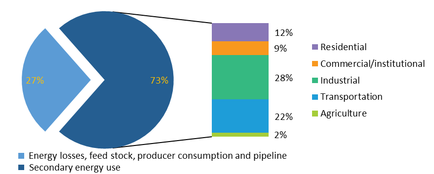Secondary energy use by sector, 2019